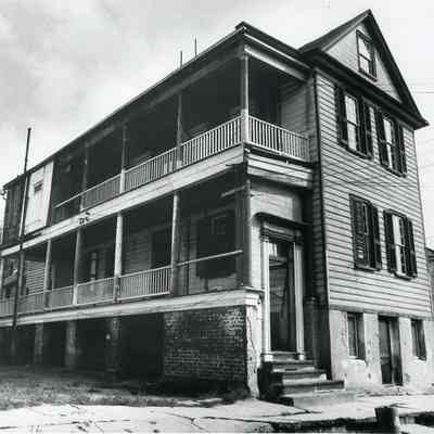 B&W photograph of 6 Judith Street (John Robinson Tenement) before rehabilitation: