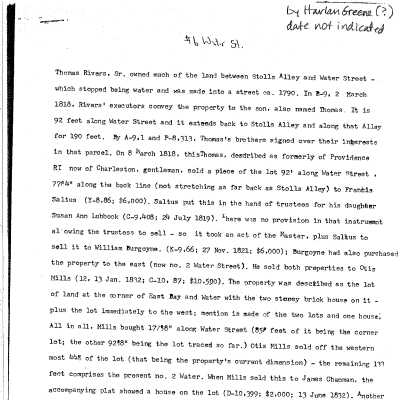 File contains FOHG house histories (undated, 1991, 1997, 2000); FOHG garden history (2000); Preservation Society Tour house history (undated); historical research (Harlan Greene?, undated); "measuring report" with floor plans (2008); realtor listing information with exterior and interior photographs (ca. 1988); postcard with illustration of house (1988) (see image in this record); Board of Adjustment-Zoning approval of property line adjustment (1998).Collection