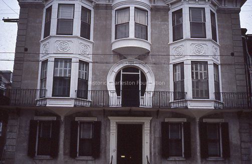Constructed 1771; remodeled ca. 1893 by Bertram Kramer. This was a rather plain 18th century tenement built by William Ellis (the eastern half of the double tenement is 64 Tradd Street). It was remodeled in the high Victorian taste by Bertram Kramer, a bridge and wharf builder and general contractor. (Source: Information for Guides of Historic Houses)