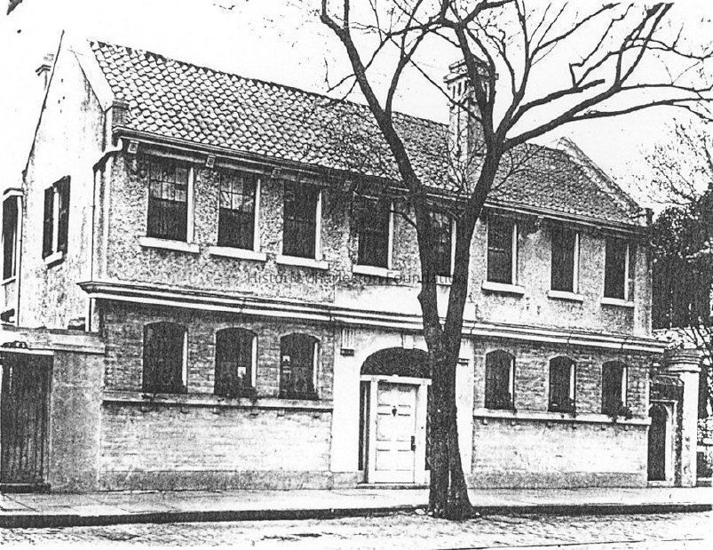 Constructed 1750. This 2-story brick building was once the stable of the Branford-Horry House at 59 Meeting Street. It was converted to a residence ca. 1913. It was subsequently the home of U.S. District Judge Waities Waring, whose decision that the Democratic primary election was open to black voters was a landmark civil rights case in 1947. (Source: Information for Guides of Historic Charleston)