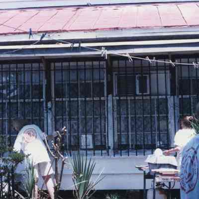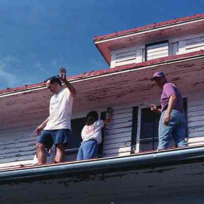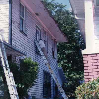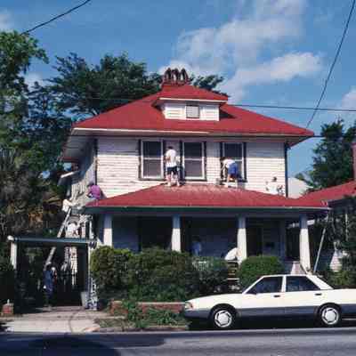 Taken April 1994. This is one of two houses in Hampton Park Terrace that were the focus of a Neighbors’ Labors project. I’m not sure if the Preservation Society organized that or not, but Jon Meffert is shown on the roof of the house in one shot.Created By