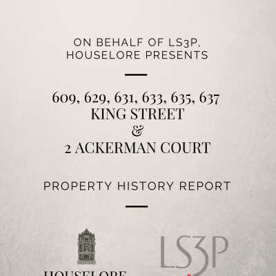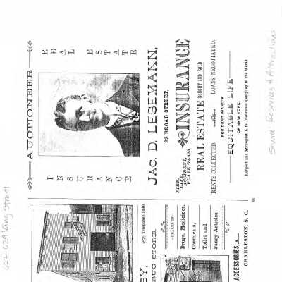 File contains property history report for 609 King, 629/631/633 King, 635 and 637 King, and 2 Ackerman Court as research for the Courier Square project (Houselore, 2017); copy of illustrated advertisement for W.J. Comar Wheelwright and Blacksmith from "Resources & Attractions of Charleston" (ca. 1898).