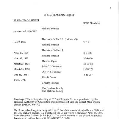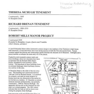 63 Beaufain Street (Theresa McHugh Tenement), 65 Beaufain Street (Richard Brenan Tenement), Currently Robert Mills ManorEntry/Object ID