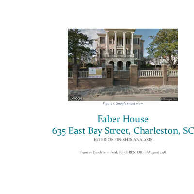The Faber House, what may be called Charleston's most conscientiously Palladian residence, has been severely altered during its existence as a single family dwelling, a post-Civil War hotel, and an apartment house of varying quality. With the exception of some remaining plaster work typical of the late classical revival on its interior, little remains in the way of features to the principal rooms; the marble mantels, silver-plated pewter hardware on the doors, and much of the mahogany trim were removed when the house was vandalized in the 1930s. Its clapboard stories above the high brick basement, the soaring 2-story Ionic portico, its semi-octagonal wings, and the high cupola topping the gable roof still carry the impression of the great waterfront dwelling it formerly was. Purchased by Historic Charleston Foundation in 1965 and restored as part of its area rehabilitation project in Mazyckborough/Wraggborough Area Rehabilitation Project. HCF sold the house in 1971. (Source: Architectural Guide to Charleston.) Also referred to as the John Joshua Ward House and 631 East Bay Street. (Architectural Guide to Charleston.) Restoration completed in 2020.