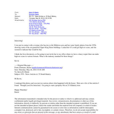 Nine color photographs (scans) of 9 buildings on Rutledge Avenue and Upper King, Meeting, America, and Spring Streets:
