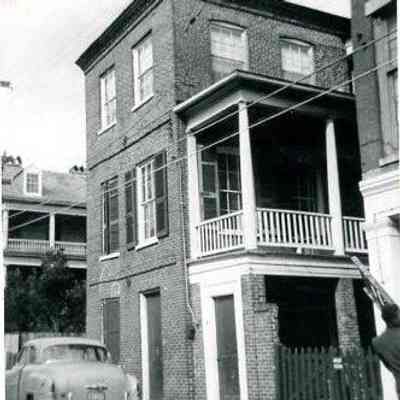 b: 66 Anson Street (Chazal House), street elevation, before neighborhood rehabilitation. Car parked on street.