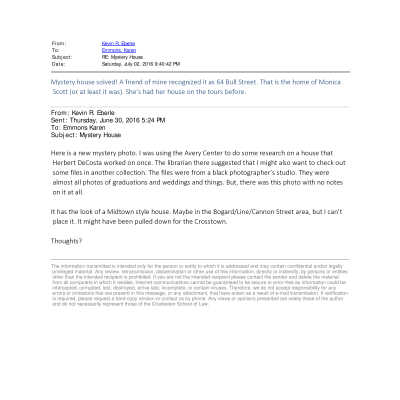 Photographs discovered by Kevin Eberle in June 2016 while doing research at Avery Research Center. From a collection of a Black photographer who did mostly graduation and wedding photography. Sent to HCF via email on on 6/30/2016.Copyright