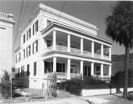 Constructed ca. 1843; rehabilitated 1982-83. A well-to-do building-supply merchant constructed this handsome Greek Revival style dwelling with a front double-tiered portico. The building has an unusual U-shaped plan with two large front rooms separated by a central hall and two smaller rooms at the rear. The interior is lavishly decorated with plaster friezes and extravagantly carved window and door frames in the Corinthian order. The double steps and wrought-iron rail add great distinction to the entry of the building. Held by a succession of noted Charleston families, the house passed to the Mazycks in 1852 and thence in 1853 to Mary Mazyck Gadsden, whose descendants held the property until 1937. (Poston, Buildings of Charleston.)