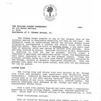 64 South Battery (William Gibbes House)Entry/Object ID