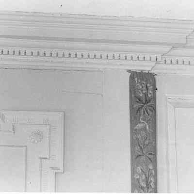 16) 1st floor, SE room, N wall (cornice over mantel mould and door case c. 1929) (pictured here)