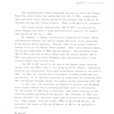 Warren Street, Radcliffeborough and Cannonborough, Covenant Property, Historic buildings--South Carolina--CharlestonArchive Details