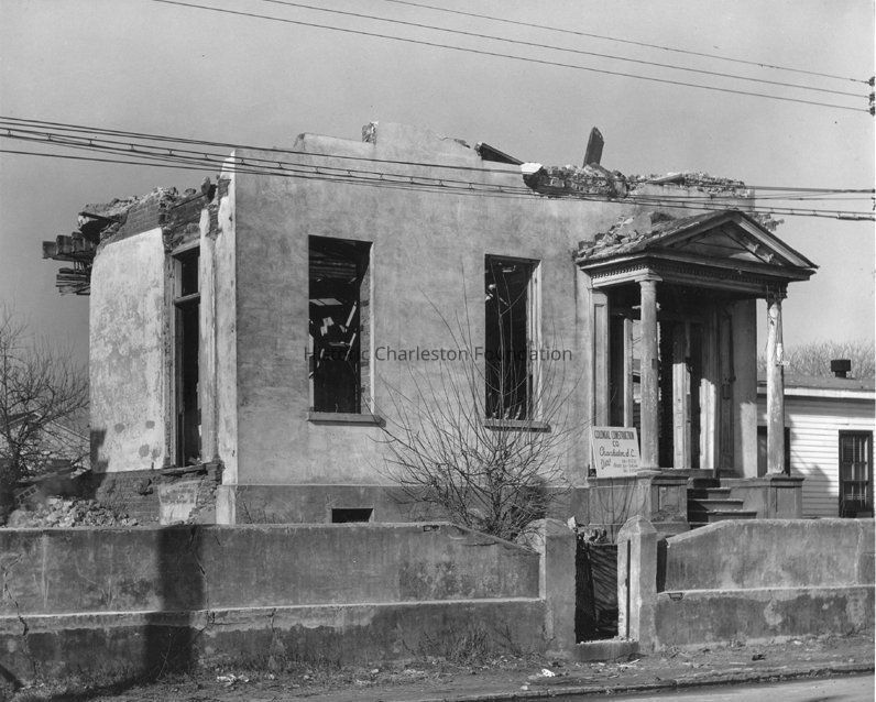 a: Southeast corner of the house with all three stories still intact. Photograph by Historic Charleston Foundation. Captioned on back "Upper East Bay (destroyed December 1957)."