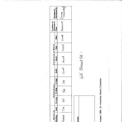 File contains graduate student report (Elliott Simon, 2018) on the history of the house, which includes historical and chain-of-title research, maps, photos, and other supporting documentation; 1886 Earthquake damage assessment; Hurricane Hugo damage assessment survey.Collection