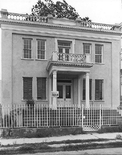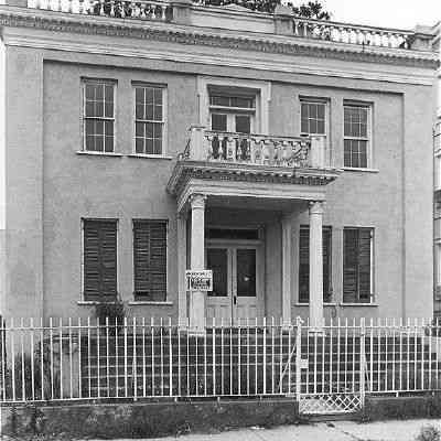 Constructed ca. 1839; rehabilitated 1984-85. Originally built as a lecture hall for the third Presbyterian Church, this building was sold in the 1870s to the Lazarus family. Formerly a tall single-story structure fronted with a fluted Doric-columned portico, it was converted, following substantial earthquake damage, by Florida Gadsden, who lived next door, as a residence for her daughter, Phoebe Gadsden Smythe. The Gadsdens added a 1-story columned piazza surmounted by a central pedimented portico. The latter feature was removed in the 1960s. Following a period of neglect, the house was restored as a law office in 1984. (Poston, Buildings of Charleston.)