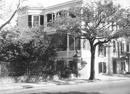 B&W photograph of 68 South Battery (Harth-Middleton House, street (front) elevation, corner view showing piazzas (partially obscured by trees). 2/63 [February 1963] written on verso of photo.Collection