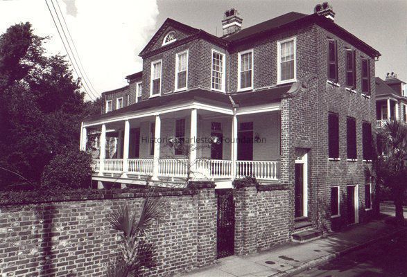 Constructed ca. 1806; restored 1960. At the death of Daniel Legare, his daughter Mary Legare, wife of Thomas Doughty, inherited the lot. The Doughtys had apparently constructed a previous house on the site, replacing it by 1806 with the present structure. The dwelling has an unusual T-shaped plan that allows for windows on three sides of the principal rooms. A chambered staircase stands at the north end of the center hall. On the exterior the simple brick face is ornamented by a curvilinear, Anglo-Dutch style brick screen. On the interior the building contains finely detailed Adamesque woodwork (Poston: Buildings of Charleston).
