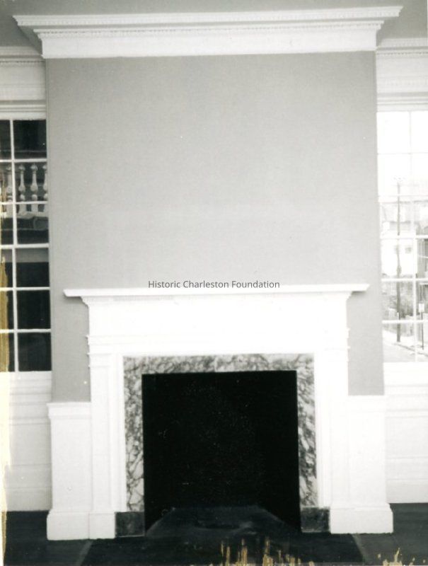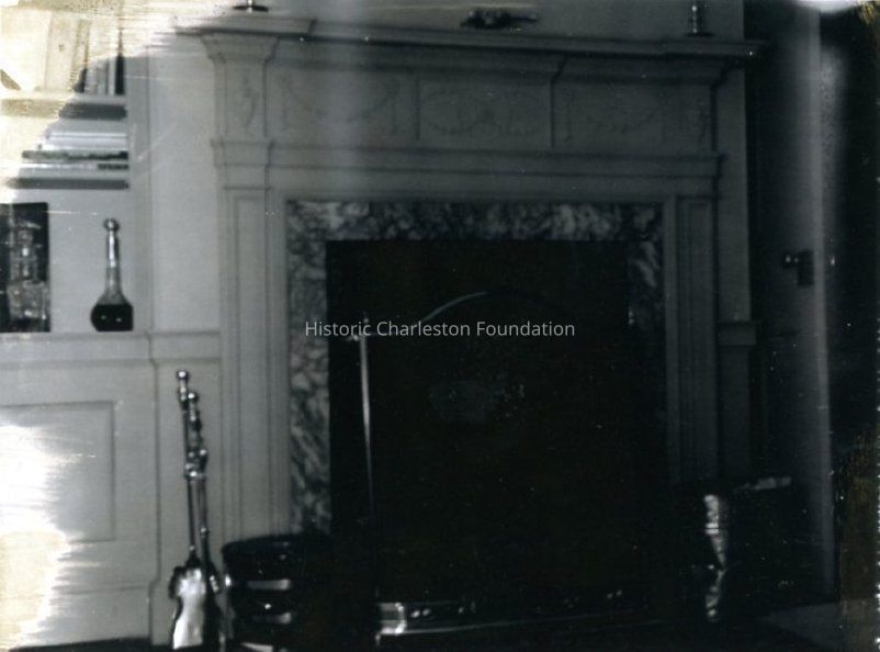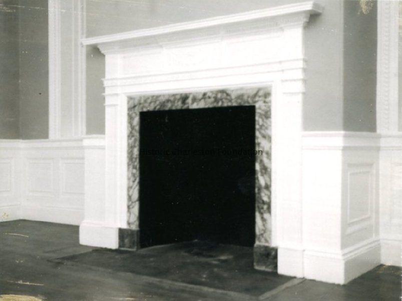 c: Fireplace in unidentified interior room.