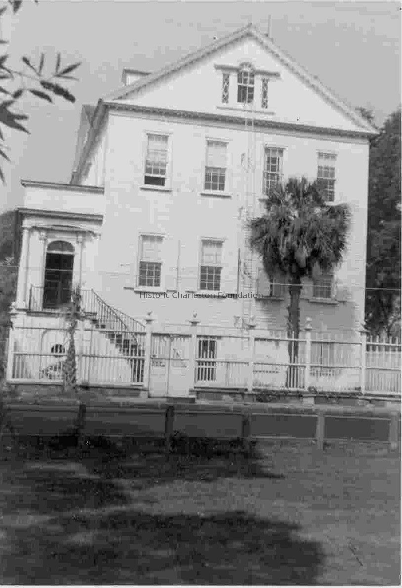 Constructed ca. 1822, formerly 1 Lucas Street. This is the ambitious house of one of Charleston's wealthiest and most progressive antebellum residents. Thomas Bennett Jr. followed his father and namesake in the operation of the family's lumber and rice milling industries that surrounded this house. Although the vast mill pond with its floodgates and causeways, the lumber mill buildings, and the manager's house have disappeared, the Bennett residence survives as a testament to the family's prominence. Bennett served as governor of SC from 1820 to 1822 as well as various terms in the General Assembly, and continued to urge industrial and social progress for his native state. A curving marble stair approaches the raised door architrave leading to the south-facing piazza entry of the Bennett House. This architrave and the main door architrave within the piazza feature semicircular fanlights and elaborate surrounds with pilasters and modillioned cornices. Pediments with lunette windows project from the roof on the north and south elevations, while the closed front end gable features a Venetian (Palladian) window. The splendid exterior woodwork, created from wood produced in the Bennett mills and probably by their own carpenters, hints at the exceptional interior, which boasts a 2-story free-flying staircase, marble mantelpieces and elaborate plaster cornices and ceiling medallions. In the late 19th century, E.L. Halsey became the owner of the remaining lumber mills as well as the house. After serving various uses after its sale by the Halseys following World War I, the building was restored by the Roper Foundation in 1988. Subsequently, the garden was renewed with a new plan and the kitchen and slave-quarters dependencies to the west were rehabilitated as guest accommodations. The remarkable wooden fence, with its columnar post topped by spherical finials, has remained, as have the wooden gates with a guilloche decoration. Formerly Lucas Street, the street name was changed to Barre Street when the thoroughfare was extended to Broad Street in the 1950s. (Poston, Buildings of Charleston.)