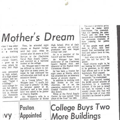 File contains newspaper article (date not iindicated) about the College's purchase of the building; handwritten staff research "source notes" (scant).Collection