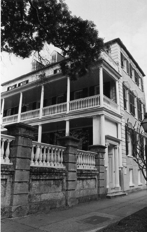 B&W photograph of 69 Meeting Street (John E. Poyas House), viewed looking northwest, showing the east (front) and south (piazzas).Collection