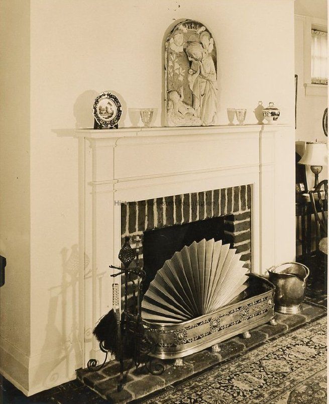 B&W photograph of a fireplace in an interior room of 7 Church Street (Carrington-Cheney House).Collection