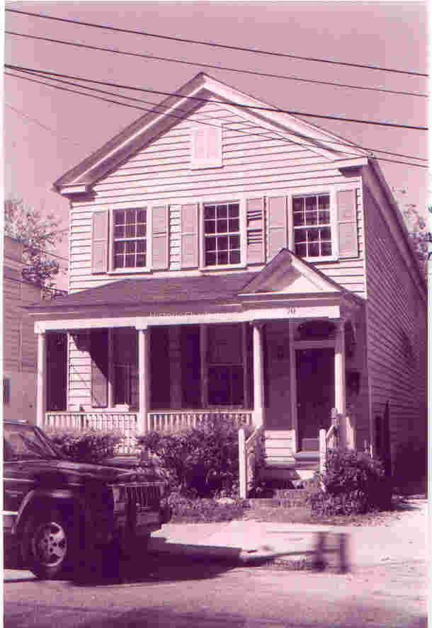 Constructed ca. 1868-71. The Divine-Huchet property was apparently subdivided by the 1860s when a small dwelling was constructed at 70 Beaufain Street, at the corner of Kirkland Lane, which is an alley running north toward Wentworth Street. Catherine Mashburn apparently built this small, gabled, 2-story house with a front piazza between 1868 and 1871. By the 1880s Thomas Finlay was using the ground story as a grocery store.