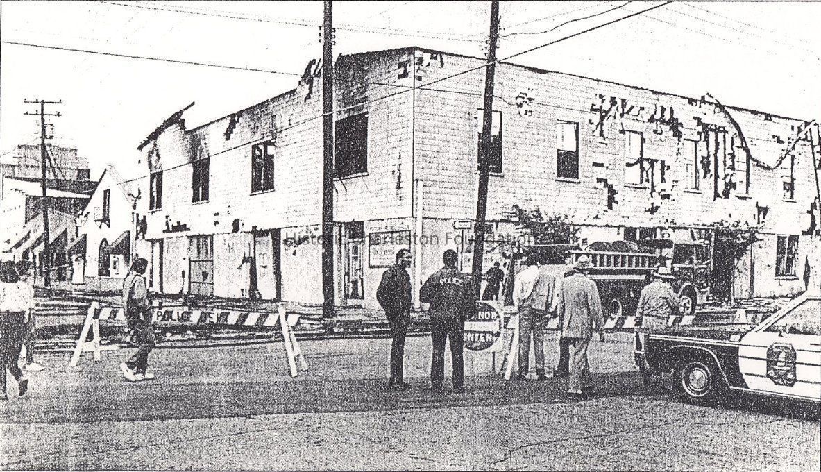 File contains newspaper articles about the fire that destroyed the building (with photographs) (1988).