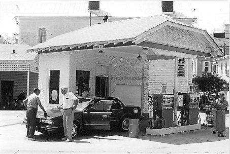 Constructed 1930s. This late-Craftsman style gasoline station until recently was one of only a few businesses remaining in the "South of Broad" neighborhood. Its stucco has a spatterdash finish characteristic of the few peninsular Charleston buildings built in variants of the Craftsman style after World War I.