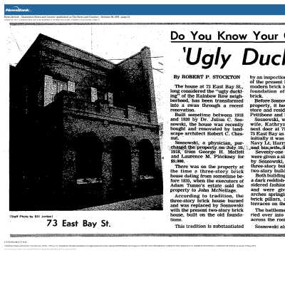 Built ca. 1918-1920. Considered the "ugly duckling" of the Rainbow Row neighborhood, at the time the property was purchased, there was a 3-story house dating from some time before 1835. According to tradition, that structure burned and was replaced with the present 2-story brick house built on the old foundations.