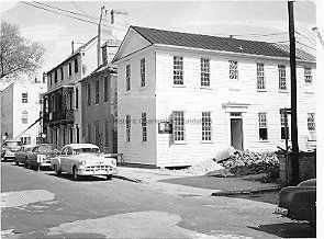 Constructed ca. 1782-88; various 20th century renovations. This simple 2-story wooden single house with a closed gable roof served as a replacement for an earlier building that burned in the fire of 1778. Although the builder is unclear, the heirs of Sarah Russell Dehon, then living in the Russell House at 51 Meeting Street, sold this rental dwelling in 1852 from the group of properties held by the intermarried Hopton and Russell families on Tradd Street and Longitude Lane. Apparently, the Russell-Dehon Tenement was one of a pair of similar single houses; the other at the south corner of the lot bordering the lane has been lost. Longitude Lane, one of the surviving small alleys of the original city, formerly accessed rear buildings for the lots on Tradd Street as well as individual structures. Prior to construction of 51 Meeting Street, the Nathaniel Russell family lived at the northwest corner of Longitude and East Bay Street. (Poston, Buildings of Charleston.)