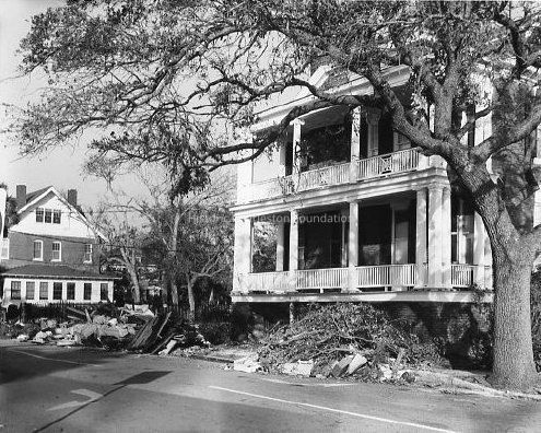 B&W photograph of 74 Murray Boulevard (Tristram Hyde House), Rutledge Avenue elevation, after Hurricane Hugo.Collection