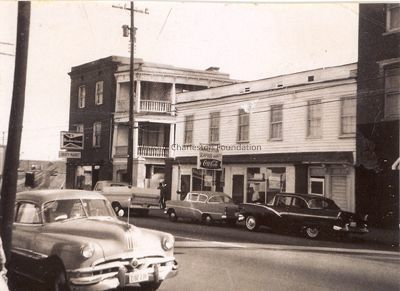 Streets, Lost Architecture, Calhoun Street, Demolished buildings, lost buildings, Corner store, Cars, Commercial buildings--South Carolina--Charleston, Lost architecture--South Carolina--Charleston, Antique and classic cars, Streets--South Carolina--CharlestonLocation