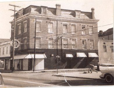 b: 79 Calhoun Street, Merchant Seamans Club, located at the corner of Wall Street and Calhoun Street. Calhoun Street elevation, corner view of building.Collection