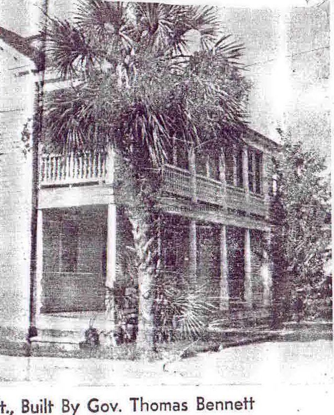 Possibly built as an overseer's house in connection with Gov. Thomas Bennett Jr.'s sawmills and rice mills in the area, dating the house is virtually impossible as the site is part of a large area acquired by Gov. Bennett and his father, Thomas Bennett, in the early part of the 19th century. It first appears on an 1852 map but is believed to be a decade older because of the style of the interior woodwork. Gov. Bennett never lived in the house; he resided across the street at 69 Barre Street. (Source: DYKYC)