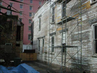 Constructed 1893-94; rehabilitated 1970s; renovated ca. 2010. Front-facing, plantation style Charleston house built in the Queen Anne style. With its form essentially the same as Greek Revival examples, the Graham House with its turned columns and two-over-two windows shows the way Victorian details were often imposed on this earlier Charleston building pattern. Recently used for the Gibbes Museum of Art. It and its neighbor at 74 Queen Street were renovated ca. 2011 for Husk Restaurant and its stand-alone bar building.