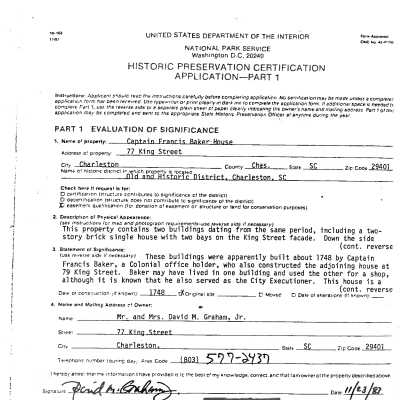 77 King Street (Capt. Francis Baker House)Entry/Object ID