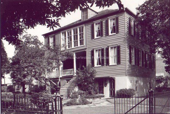 Constructed ca. 1760. Extensive changes make it difficult to ascertain the exact date of construction of this wood house on a raised stucco foundation; however, it is considered to be one of the earliest surviving structures within the original Ansonborough suburb. Certain details, such as the heavy heart-pine framing sheathed in beaded black cypress weatherboarding and the low pitched hip roof, indicate an 18th century date. Construction of the building began before or after the lot (part of lot no. 5 of the original George Anson tract) was sold by Daniel Crawford to the Christ Church planter Daniel Legare in 1760. The Legare family sold the house in 1806 to the Mortimers, who renovated some rooms with new woodwork in the fashionable Neoclassical style (Poston, Buildings of Charleston).