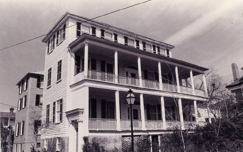 B&W photograph of the William Holmes House (8 King Street), corner view showing the west (front) and south (piazzas) elevations.Collection