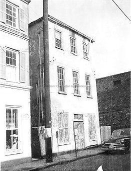 Constructed ca. 1800; rehabilitated 1973, 1981. Situated on one of the streets of the Grand Modell of 1680, 8 Queen Street stands as an example of combined domestic and commercial spaces. Built after the fire of 1796, this 3-story stuccoed brick building was constructed by Joseph Olman, a chandler, and completed before his death in 1813. More than likely, the principal rooms of the upper floors served as Olman's living spaces and the ground floor functioned as commercial space. The structure was used in this fashion in the 20th century when it housed the workshop and residence of Edwin H. Smith, a well-known Charleston cabinetmaker operating in the city until his death in 1979. (Poston, Buildings of Charleston.)