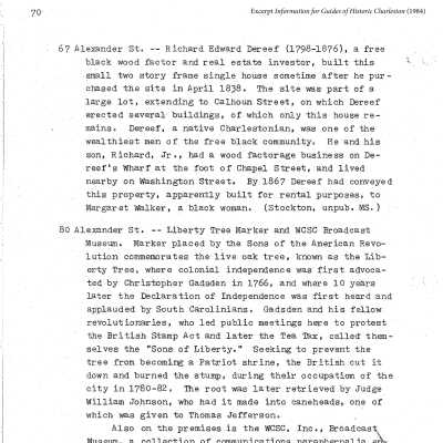 Mazyckborough and Wraggborough, Alexander Street, Middle Street, Liberty Tree, Covenant Property, Historic buildings--South Carolina--Charleston, Historical markers--South Carolina--CharlestonArchive Details