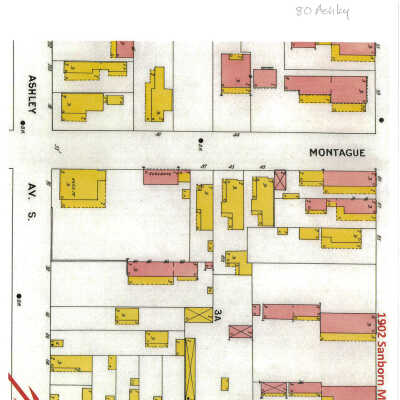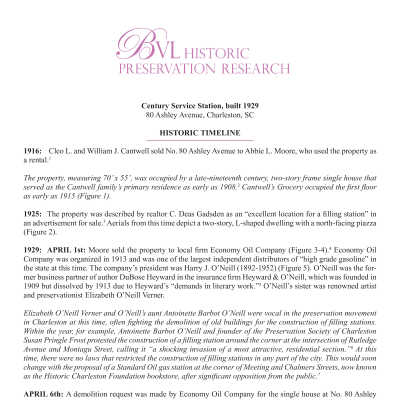 No building history on file before 2023 except that a grocery and residence stood on the site at the turn of the 20th century (Cantwell's Grocery) and a gas station was later constructed and operated from around 1930 through 1970 (Century Service Station). (Old Codgers Charleston Address Book.)