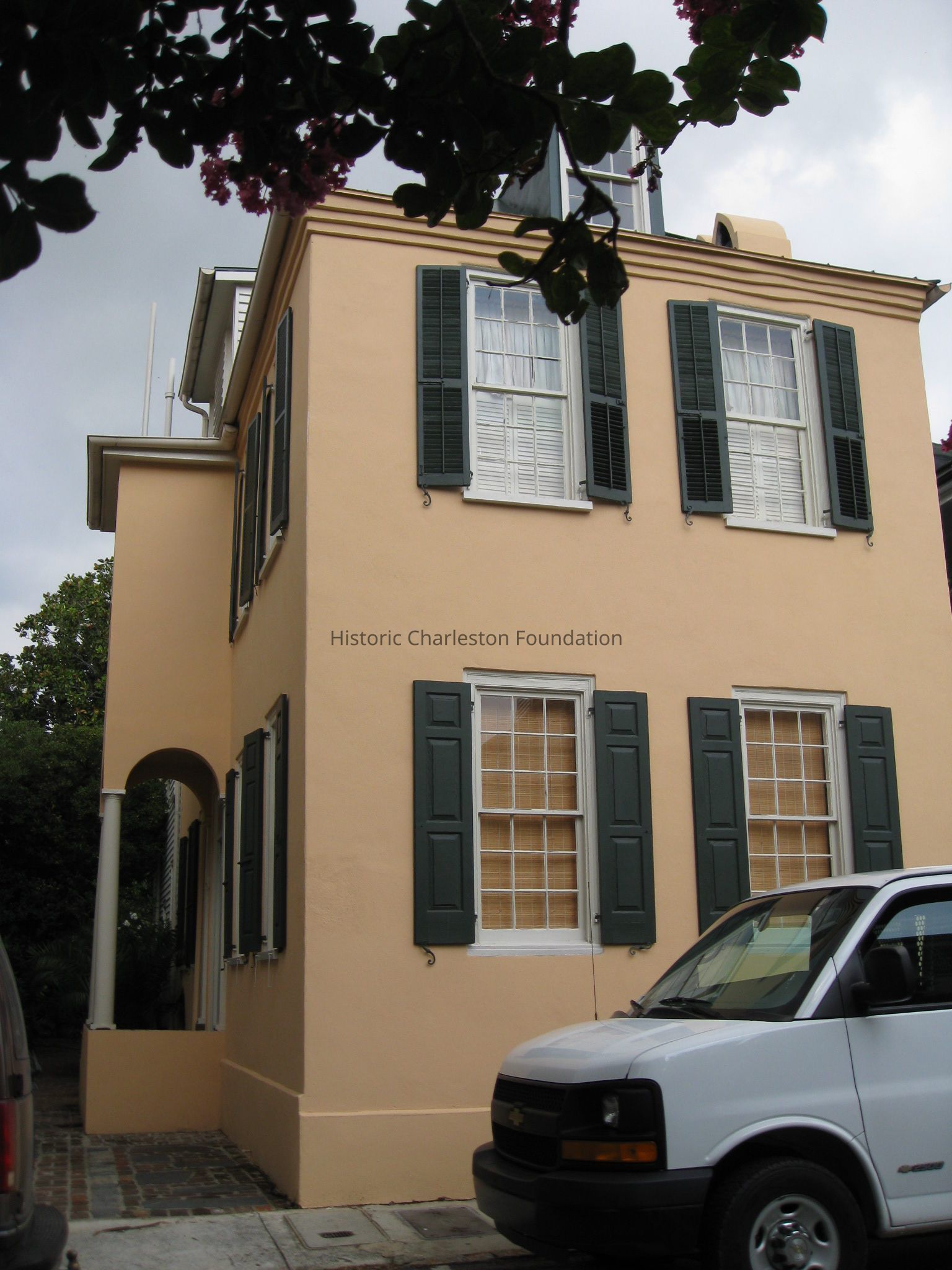 Constructed in 1762, before the Revolutionary War, when this portion of King Street was already well developed. A typical 2½ story Charleston single house with stucco facing sites on a substantial foundation. Piazzas were formerly located on the south side but were removed some time early 20th century.