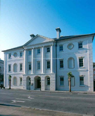 Constructed 1753; rehabilitated after fire, 1788-92; additions and renovations, 1883, 1921, 1940, 1968; restoration begun 1997, completed 2003. First constructed in 1753 as the provincial statehouse for the colony of South Carolina, the Charleston County Courthouse is one of the most important buildings in the state. Standing at its prominent position at the northwest corner of Broad and Meeting Streets, the old planned civic square, the Courthouse has withstood many vicissitudes in its nearly 2½ centuries of existence. Wars, fires, neglect, and numerous renovations and additions obscured its detailing until a recent architectural study and the advocacy of community organizations led to the restoration of the building's 1792 appearance. The structure originally served the ideal of symbolic display with its scale and plan indicative to citizens and travelers to Charleston of the power of English imperial rule. Originally 2 stories, the building contained a generous lobby and a grand staircase that opened from the pedimented engaged portico on Broad Street; all of which provided an appropriate setting for the affairs of state. The provincial court met in a large ground-floor courtroom, while the Commons House of Assembly and the Royal Governor's Council Chamber occupied separate quarters on the second floor. The latter was a lavishly finished room with paneling and gilded Ionic pilasters in which the governor sat in a ceremonial chair (which still survives) under a carved and gilded royal coat of arms. It was here that great affairs of state were announced to the public from a balcony overlooking Meeting Street. Here, too, after the end of royal government, the Declaration of Independence was first read in South Carolina. The building burned, suspiciously, during the Constitutional Ratification Convention of 1788. Debate during the convention divided lowcountry merchants and planters eager for a strong national government and restoration of trade with Great Britain from farmers and upcountry planters desiring state autonomy. Determined to retain the state capitol, Charlestonians rebuilt within the shell of the statehouse in a Neoclassical style and added a third story. Some sources hint that James Hoban, the Irish-born architect of the White House and then resident in Charleston, may have assisted with the design and construction of the new statehouse. The restored building included state circuit courts and sheriff's offices on the ground floor off the lobby, federal district and circuit courts on the second floor, and rooms on the third floor that variously housed the Charleston Library Society, Charleston Museum, and later the South Carolina Medical Society. Every visitor to Charleston from Lafayette to President James Monroe went to see the Museum. A renovation in 1883 destroyed the central lobby and, therefore, the old circular patterns through the building. In 1926 and 1941 insensitive additions doubled the size of the building and a maze of corridors and partitions obscured the fabric of the original Courthouse. The building was heavily damaged during Hurricane Hugo in 1989. In 2003, restoration work was completed, bringing the Courthouse back to its 1792 appearance. (Poston, Buildings of Charleston.) (Possibly previously known as 77 Meeting Street.)
