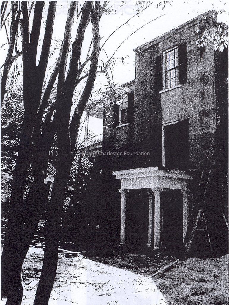 Constructed ca. 1800. Also known as 131 Tradd Street, this is a 2-story masonry residence above a finished ground-level basement. The original construction was a Charleston single house with two rooms to a floor divided by the entry/stairhall. In the mid-to-late 19th century a wing was added across the rear of the house, projecting beyond the original core at both sides.