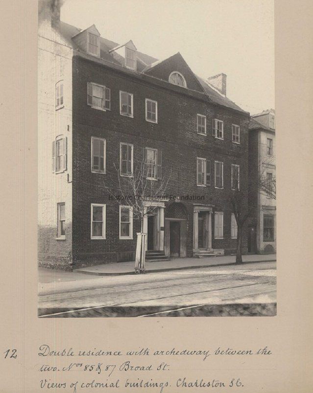 #12 Double residence with archedway (sic) between the two Nos. 85 & 87 Broad St. Views of colonial buildings. Charleston SC.Lexicon