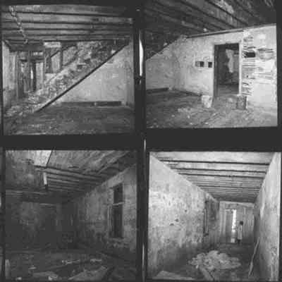 Two contact sheets with 20 B&W photographs of 85 Calhoun Street, taken prior to renovation and after the demolition of neighboring buildings.