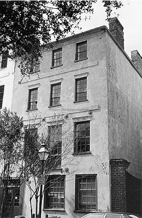 Constructed ca. 1785-87; restored 1930s, 1996-97. The house of an English merchant, James Osmond, was destroyed on this site in the fire of 1778. Passing to another English merchant, the site was conveyed to one of Charleston's leading mercantile firms, who built the present 4-story dwelling with a low hipped roof prior to 1788. A series of merchants including British capitalists Thomas Hingham of England and Charles Hubert owned the property prior to the Civil War, after which it was sold to Luder Sahlmann, who used it as a storage warehouse for his feed-and-grain business next door. A small gauged railway ran through the present entry door, which was a covered passage through the building. In this condition, the house was acquired by Louise Graves, founder of the Slave Mart Museum with her sister, and restored as a residence. The building retains its original fenestration including large shop style windows on the first story and belt courses between floors; the slightly longer windows on the second story indicating that this was the floor used for entertaining. The former shop entry was replaced by a window moved from the rear of the house at the time of restoration. The interior is largely intact and contains woodwork, particularly on the second story, with transitional Georgian/Neoclassical moldings. The house was restored by a restoration architect for use as his own residence in 1997.
