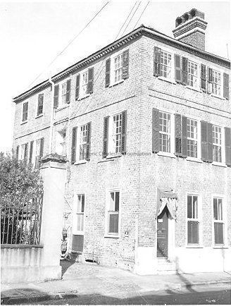 B&W Polaroid photograph of 86 Hasell Street (Anthony Toomer House), corner view of building, showing the south (front) and west elevations. Taken before the Hasell Street doorway was altered to become a window.