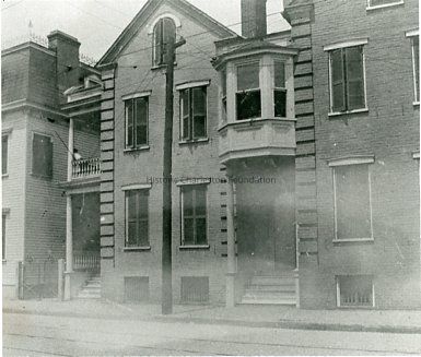 Constructed ca. 1859. These identical single houses were built by John Riggs in the late-1850s along with 15, 17, and 19 St. Philip Street. Riggs acquired these lots in 1859 and built the five Italianate houses as rental units. 90 Wentworth remains largely unchanged with its brick quoins, arched window in the gable end, and double-tiered piazza with a recessed piazza door screen containing carved decoration. However, a noticeable change in 88 Wentworth Street is the addition of a bay window in the second tier of its enclosed piazza. Riggs owned many properties around the city but is perhaps best remembered as the founder of Charleston's first street car system, established in 1866.