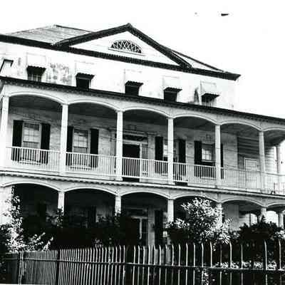 b: View of piazzas. Picket fence in foreground. Two copies of photo in sleeve.Collection